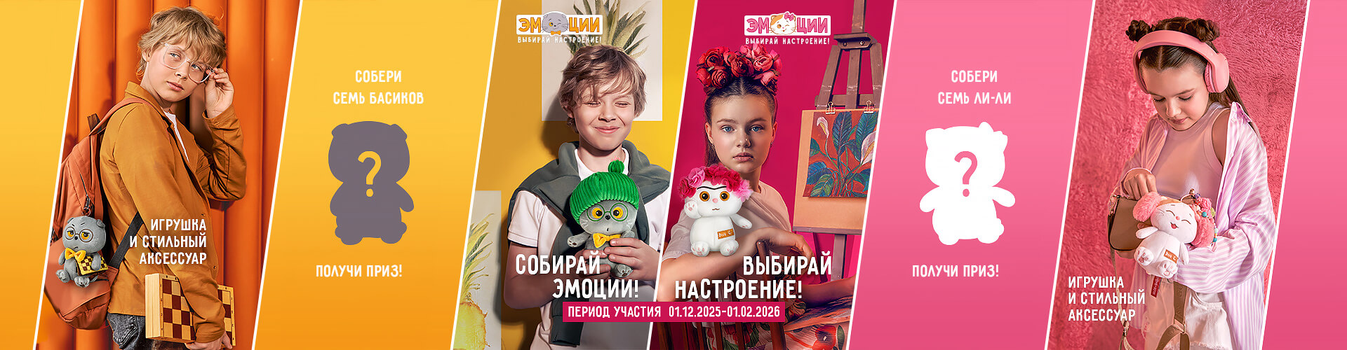 Собери 7 Басиков или 7 Ли-Ли из коллекции "Эмоции" и получи Басика или Ли-Ли со своим именем, а также приглашение в закрытый клуб коллекционеров БУДИ БАСА, в котором проводятся розыгрыши ценных призов!