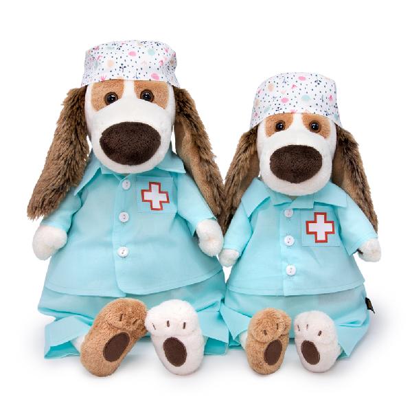 Бартоломей–доктор в хлопковом костюмчике цвета бирюзовой воды, с красным крестом на нагрудном кармашке. Колпачок сшит из х/б ткани в мелкий цветочек.