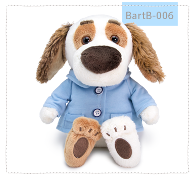Бартоша в трогательном пиджачке из х/б футера цвета голубой реки на двух белых пуговках с синим ободком.