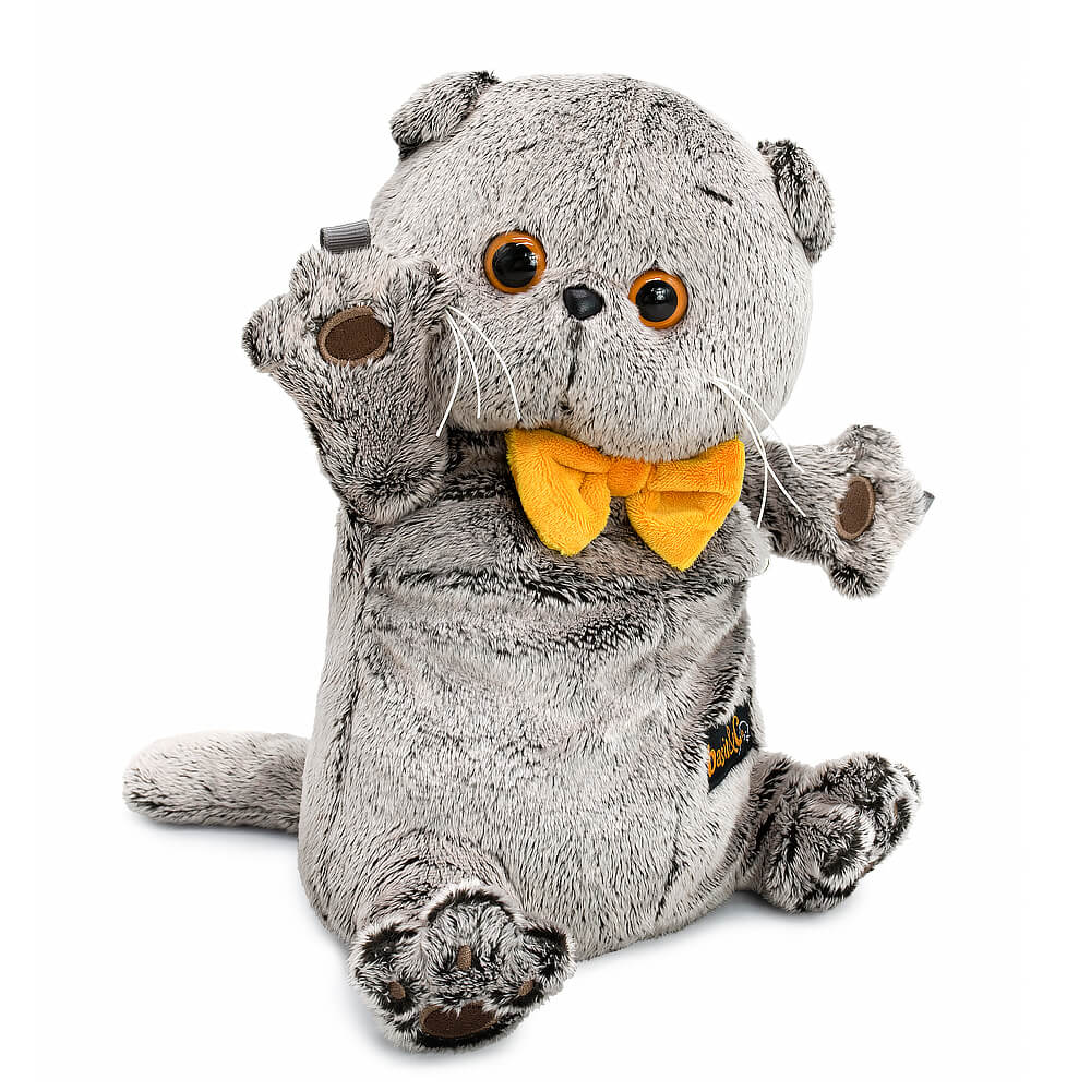Милая сумка кот Басик с его любимым галстуком-бабочкой из мягкого софта золотисто-охристого цвета. Басик будто раскрывает лапки в дружеском объятии. Сумка сшита из оригинального меха, с одним отделением с подкладкой и фирменным ремнем, который легко регулируются по росту.
