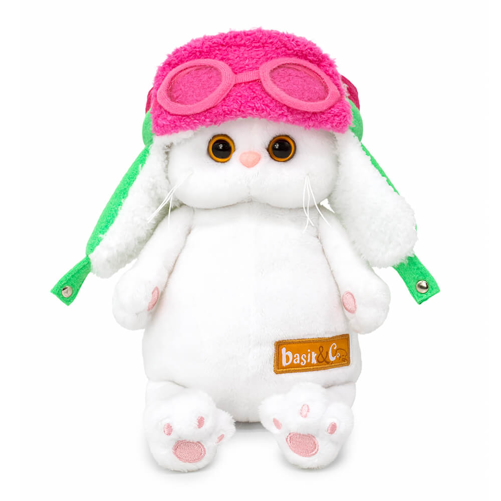 Красотка Ли-Ли в крутом шлеме для полётов на самолёте и параплане. Шлем сшит из трёх цветов мягкого флиса и короткого, кудрявого меха белого и ярко-розового цветов. У шлема удлинённые ушки, которые застёгиваются на металлическую кнопку. На козырьке шлема прикреплены специальные лётные очки с розовой оторочкой из эко-замши.