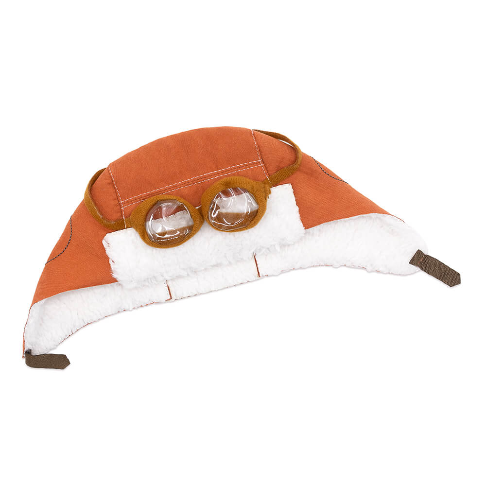 Летный шлем из рыжей искусственной замши на белом меху. В комплекте — длинный шарфик из белоснежного софта.