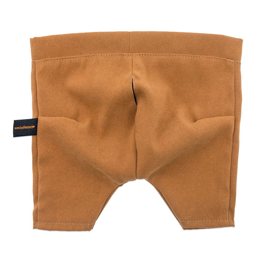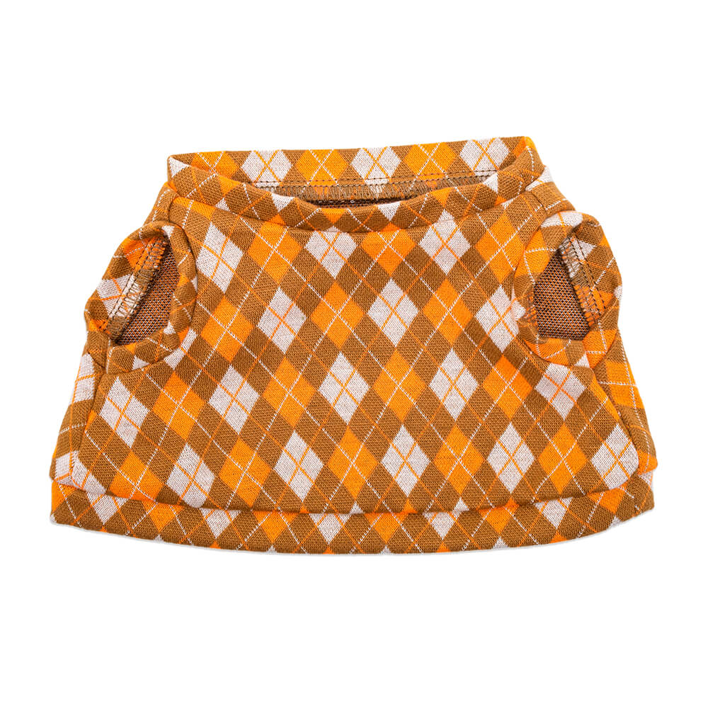 Жилет из жаккардового трикотажа в ромбик. Штанишки из бархатистой плотной ткани цвета горчичного мёда и лонгслив из х/б трикотажа молочного цвета. Атласный галстук‑бабочка шоколадного цвета.