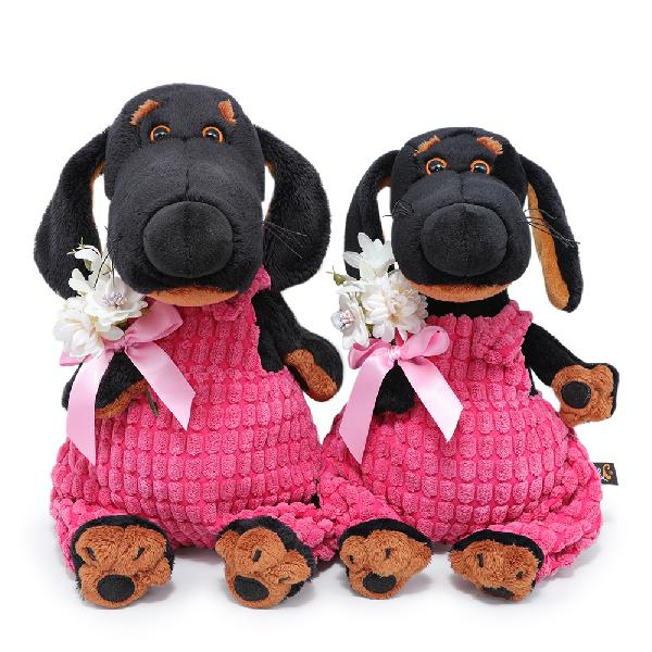 Марк Ваксон в нарядном комбинезоне из мягкого крупно-ячеистого вельвета фламингово-розового цвета. В лапках у Ваксона очаровательный букетик белоснежных цветочков, перевязанных широкой атласной лентой.