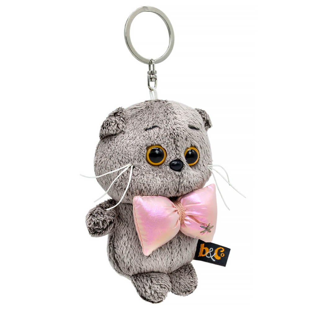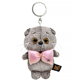 На коте Басике шикарный объемный бант из блестящей розово-сиреневой ткани с мягким наполнителем. Бант украшен вышитой звёздочкой.