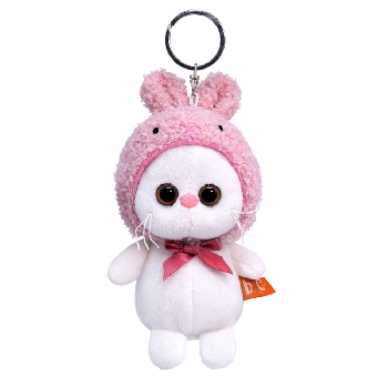 Миниатюрная версия кошечки Ли-Ли в формате брелока. Лиличка в смешной розовой шапочке с ушками зайчика и в темно-розовым атласном бантике.