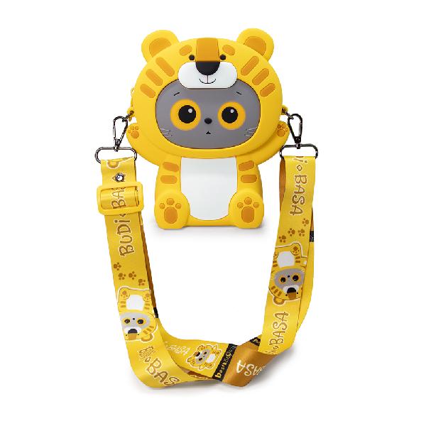 Эффектный наплечный ремень выполнен с принтом — логотипом BUDI BASA и изображением Басика-тигрёнка. С ярким другом на плече весело бежать по солнечным тропинкам и прыгать по сверкающим лужам!