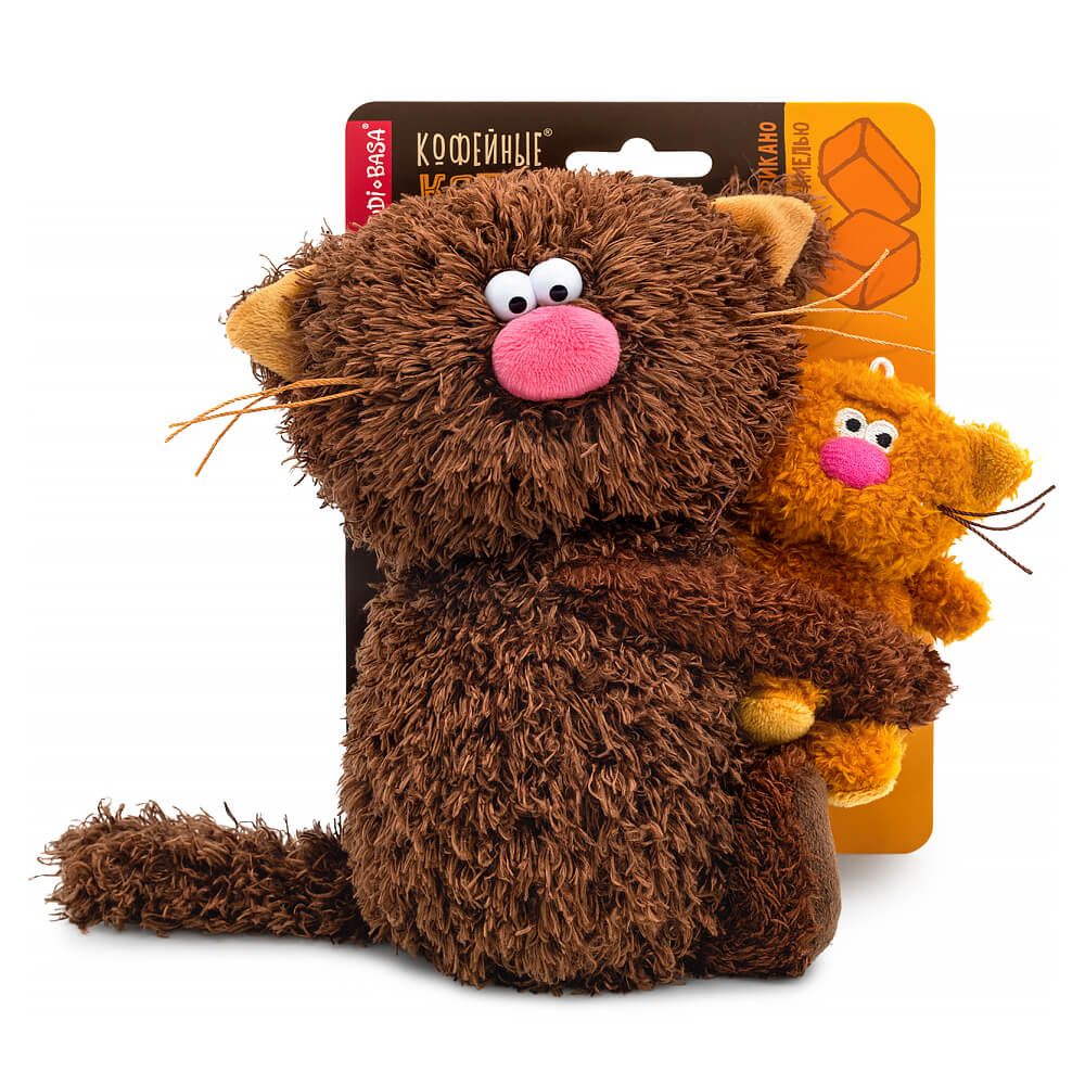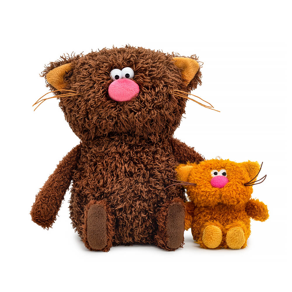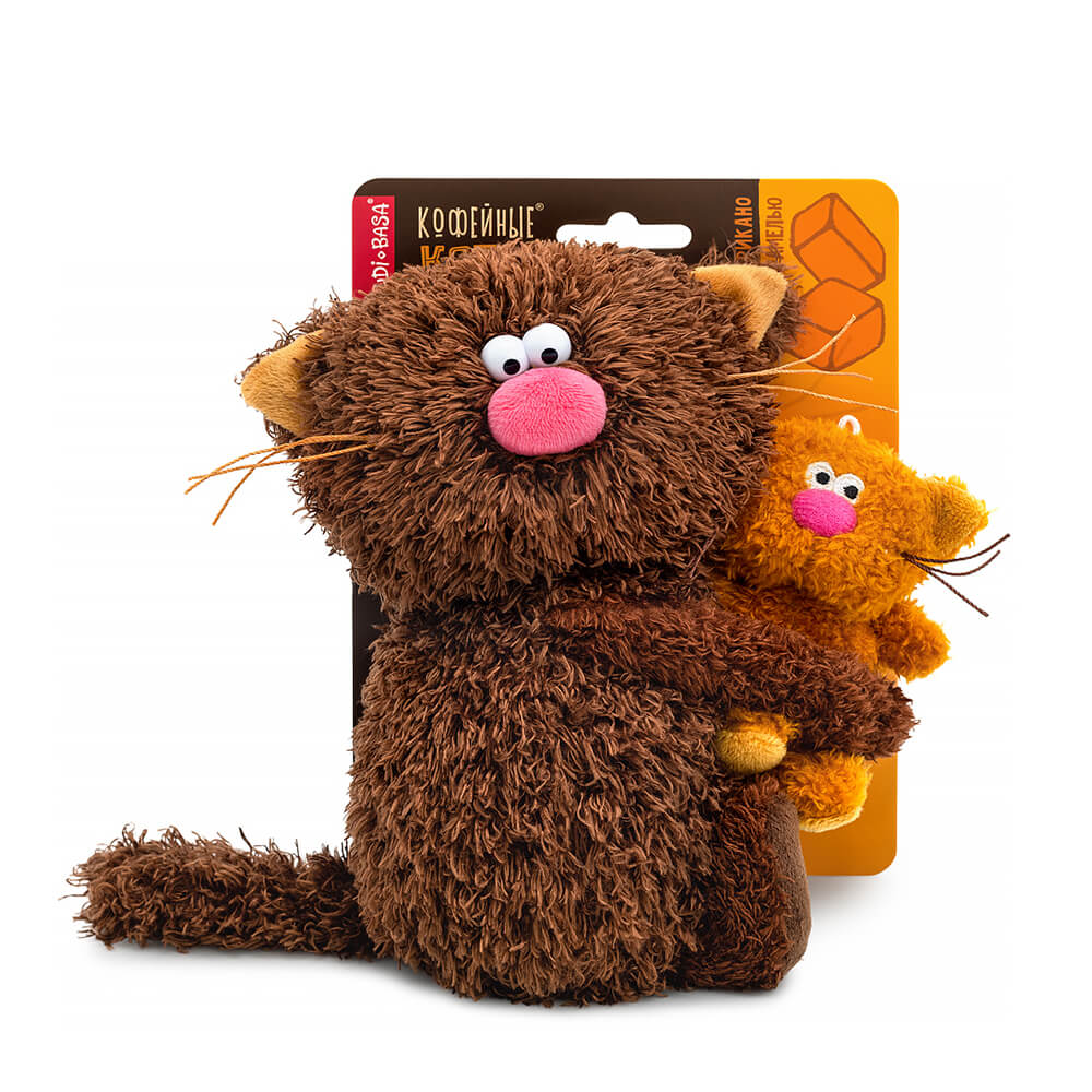 Очаровательный кофейный кот Американо из тактильно приятного эко меха цвета крепкого кофе. У кота есть дружок – сиропчик-котёнок Карамель. Ведь так вкуснее! Котик Американо трогательно держит в лапках малыша Карамель, сшитого из карамельного эко меха.
