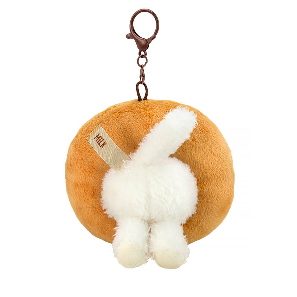 Забавный брелок в виде милого котёнка Молоко из тактильно приятного эко меха молочного цвета. Котёнок расположился в пышном пончике, сшитом из нежного софта. Сам пончик цвета выпечки, а сверху крем цвета горького шоколада с вышитой карамельной посыпкой. У брелока удобный карабин шоколадного цвета с застежками, который можно отстегнуть.