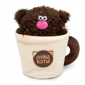 Милый котёнок Эспрессо из тактильно приятного эко меха цвета горького шоколада. Котёнок уютно расположился в забавной кружке, которая сшита из молочного и шоколадного софта. Сбоку на кружке стильный лейбл из силикона.