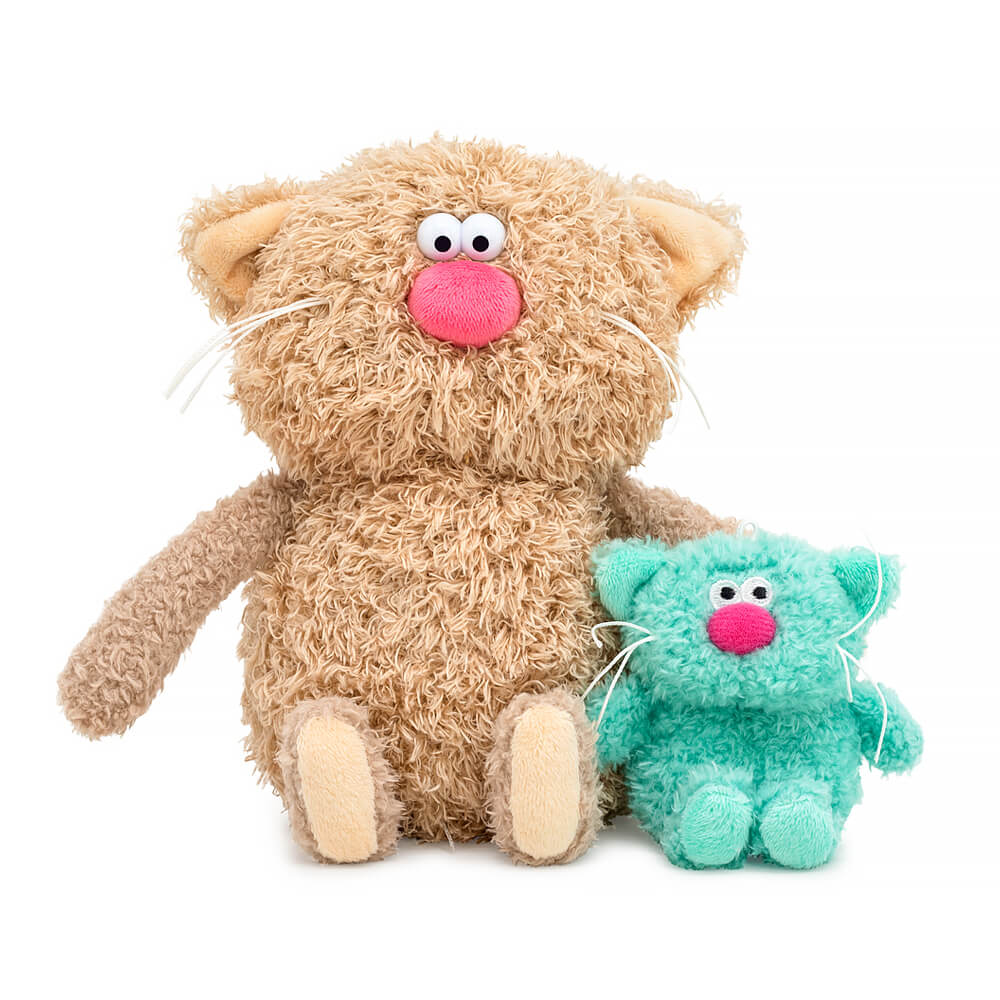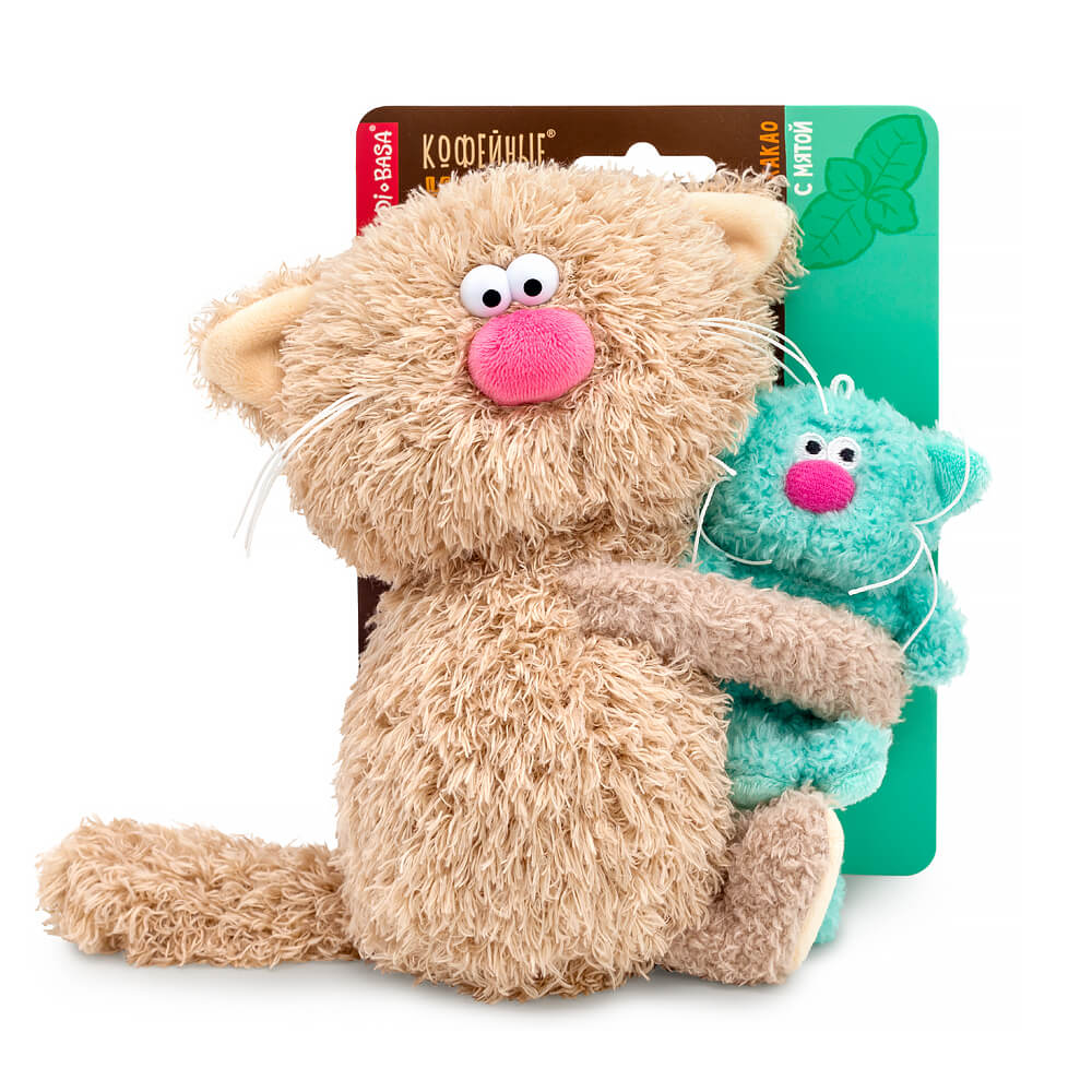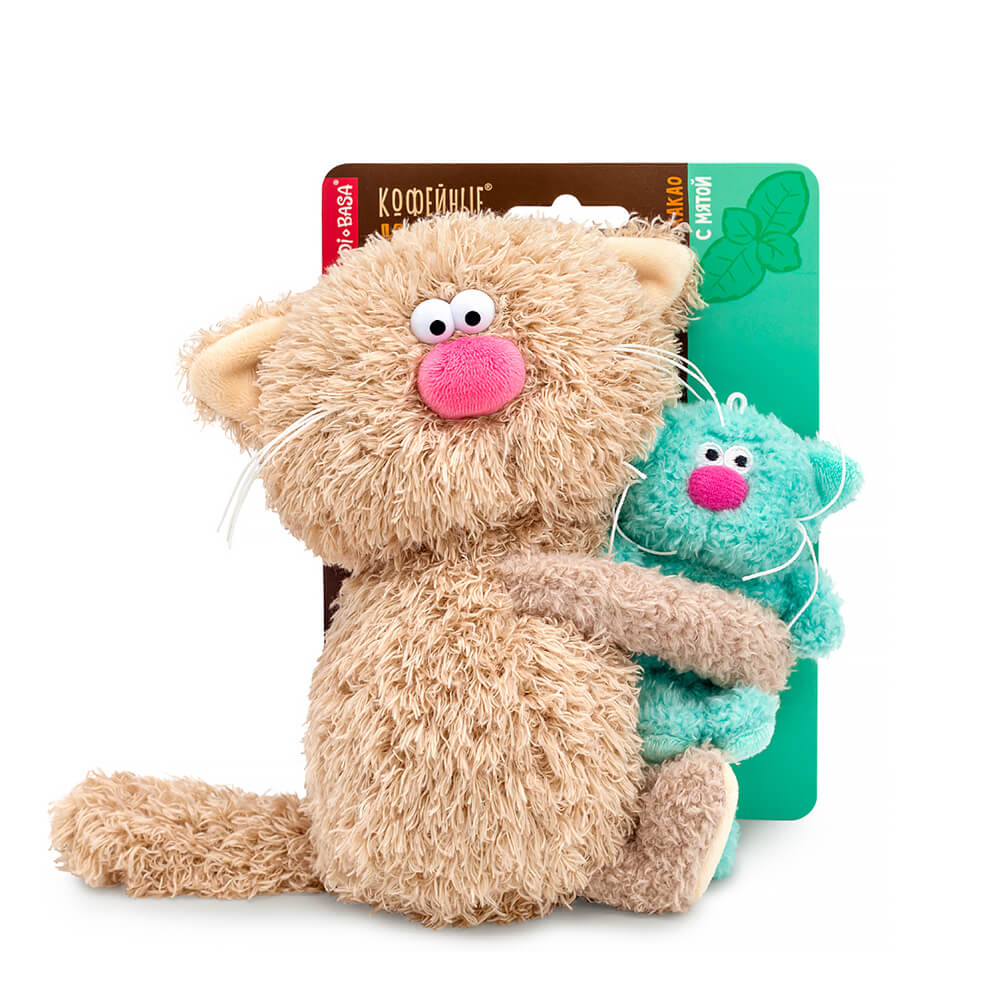 Очаровательный кофейный кот Какао из тактильно приятного эко меха цвета какао с молоком. У кота есть дружок – сиропчик-котёнок Мята. Ведь так вкуснее! Котик Какао трогательно держит в лапках малыша Мяту, сшитого из мятного эко меха.