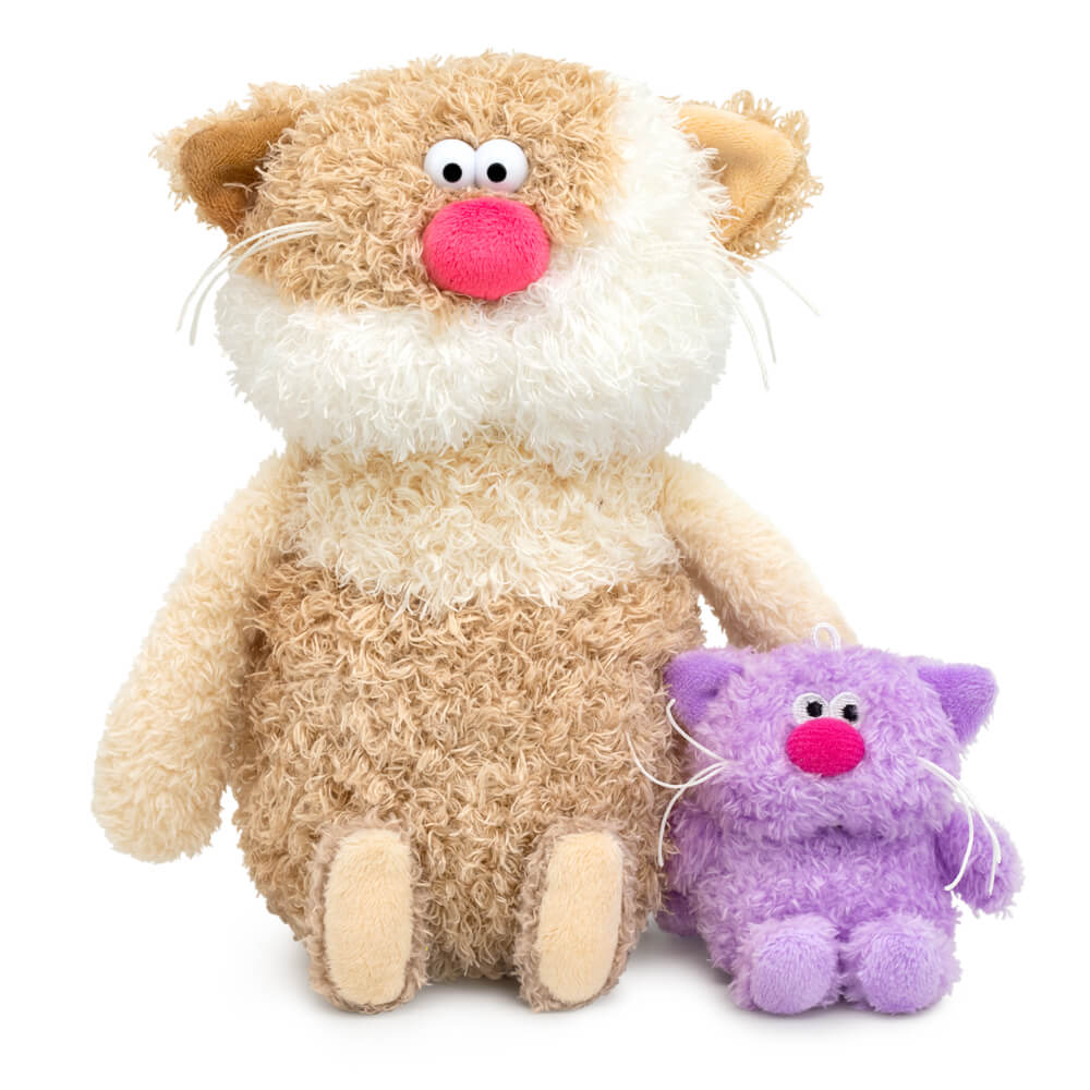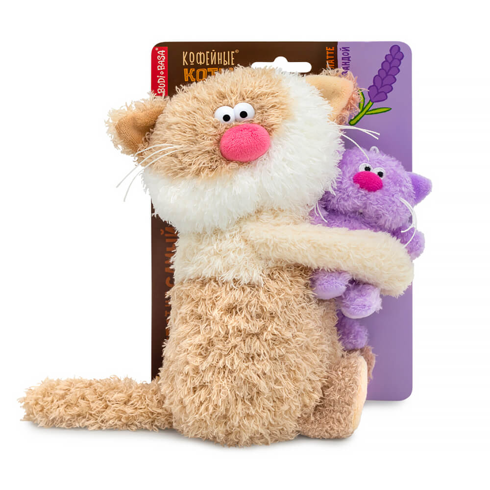 Шикарный кофейный кот Латте из тактильно приятного эко меха в трёх оттенках: цвета молочного какао, цвета топлёного молока и белоснежного цвета молочной пенки. У кота есть дружок – сиропчик-котёнок Лаванда. Ведь так вкуснее! Котик Латте трогательно держит в лапках малыша Лаванду, сшитого из сиреневого эко меха.