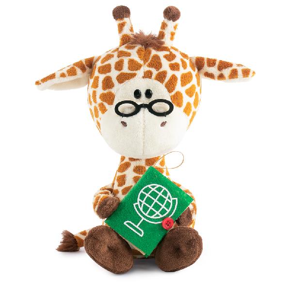 Умница Жан держит книгу с глобусом на обложке и мы можем только догадываться о чем она — о путешествиях или о животных со всего света, о материках и океанах, точно о том, что даст волю воображению в игре. На носу жирафика оригинальное пенсне, завершающее образ юного ученого.