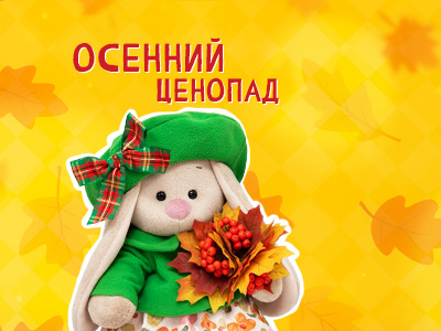 Скидка 30% на любимые игрушки из подборки “Осенний ценопад”. В акции участвуют избранные товары из коллекций Басик и Ко, Зайка Ми, Символ года и другие.